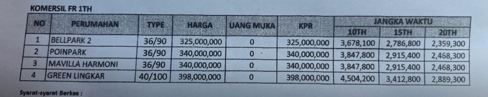 POINPARK, Jempong Baru, DP 1 Juta, Angsuran 2,4 Juta